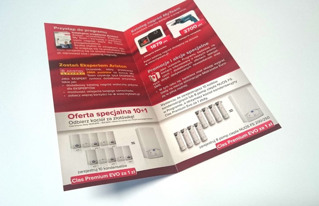 Ulotka promocyjna programu lojalnościowego, format po złożeniu 210 x 99 mm.